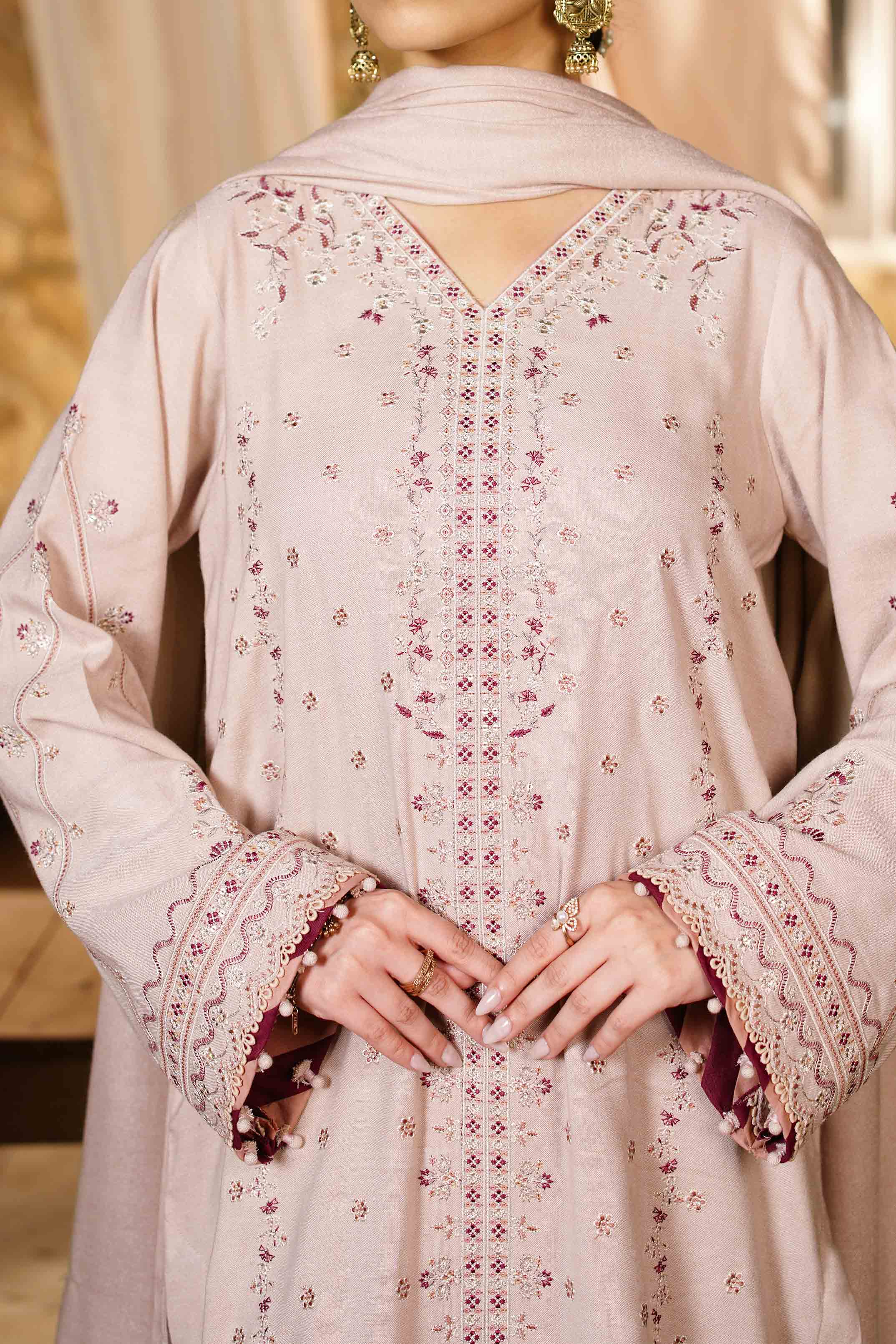 Unstitched Peach Embroidered - 3Pc