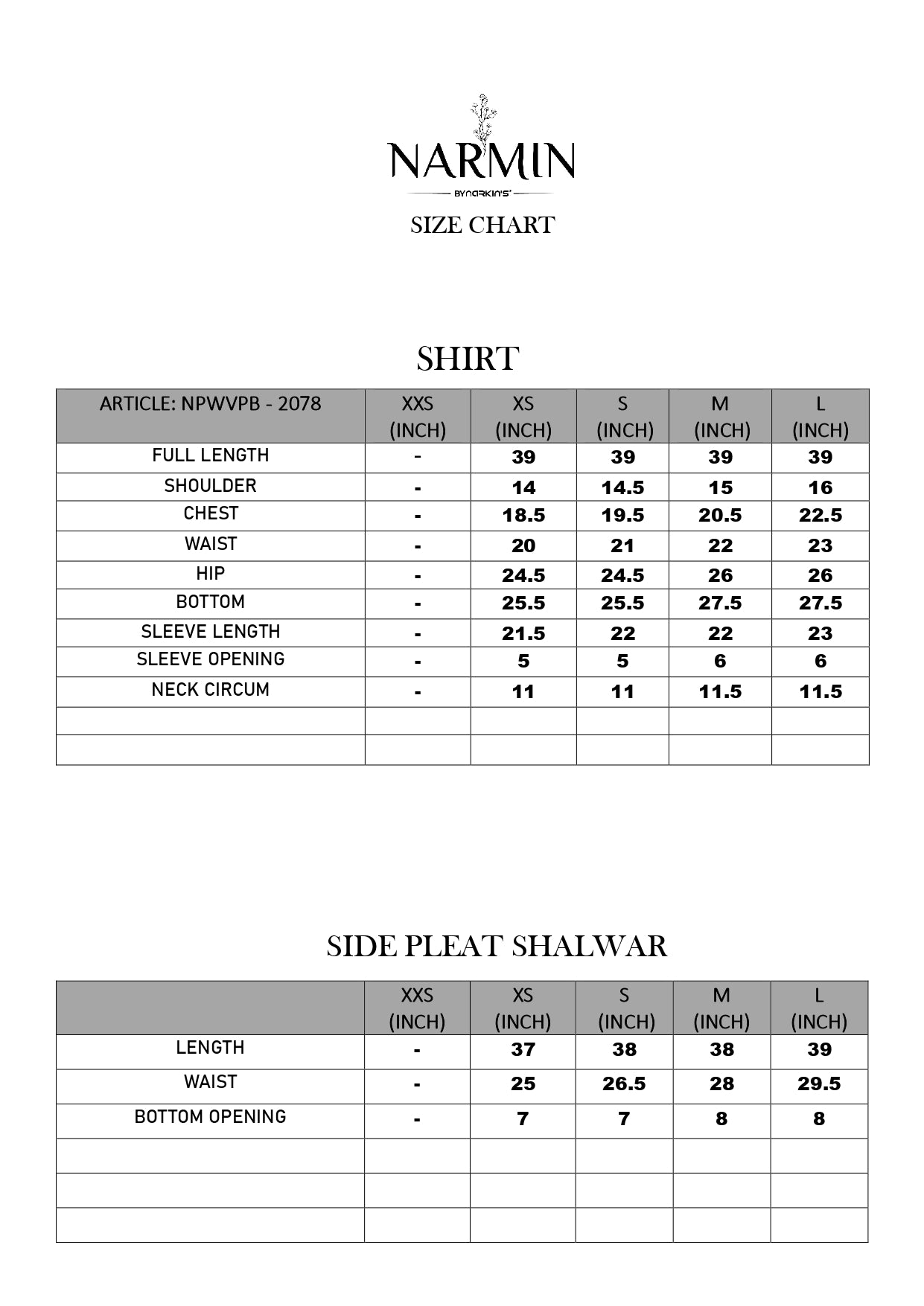 SIZE CHART IS AVAILABLE WITH THE PICTURES