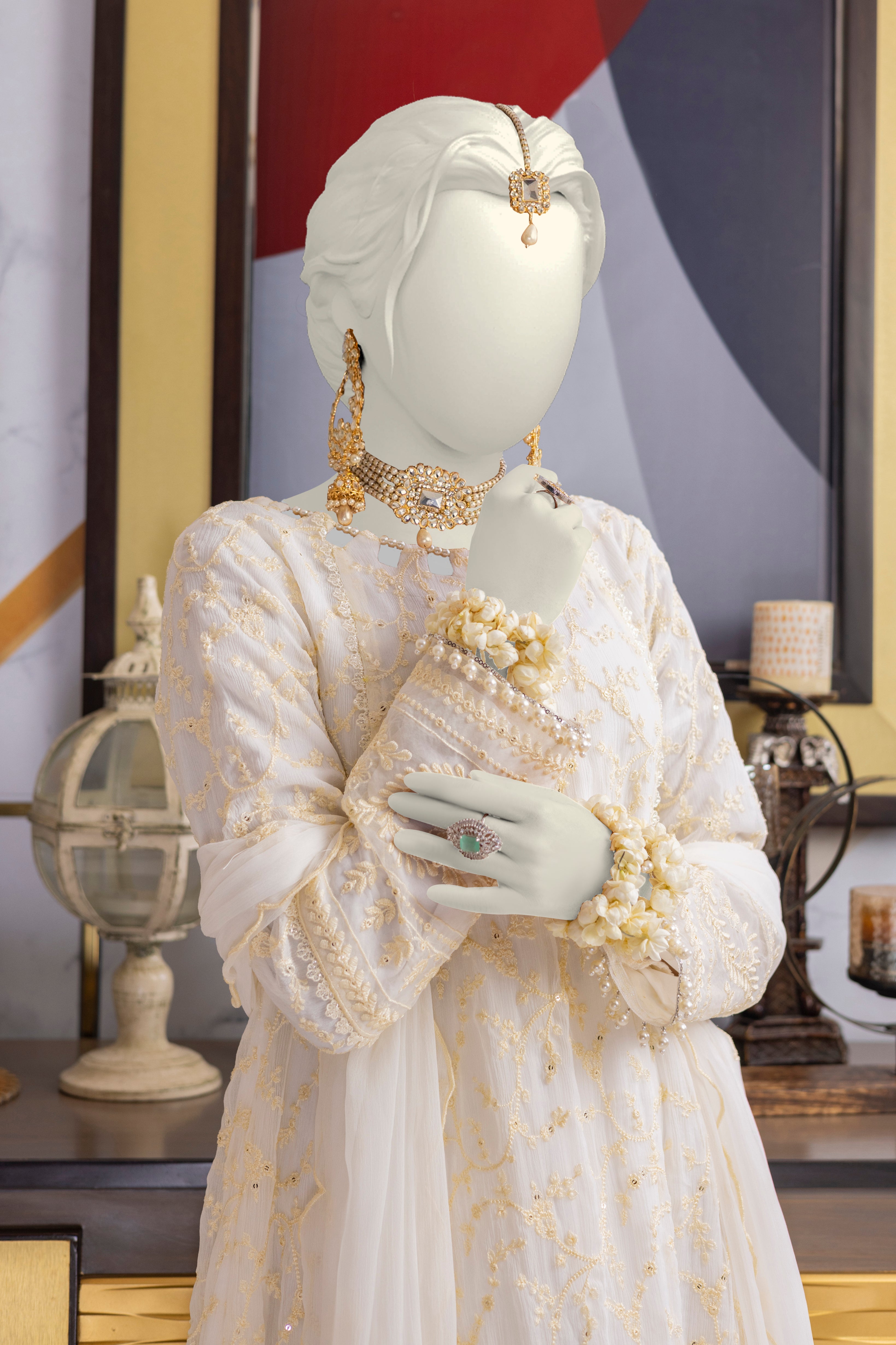 Style your Festive look in this Three-piece Chiffon luxury Shirt, Raw Silk Trousers & Chiffon dupatta with embroidered all-over motifs.