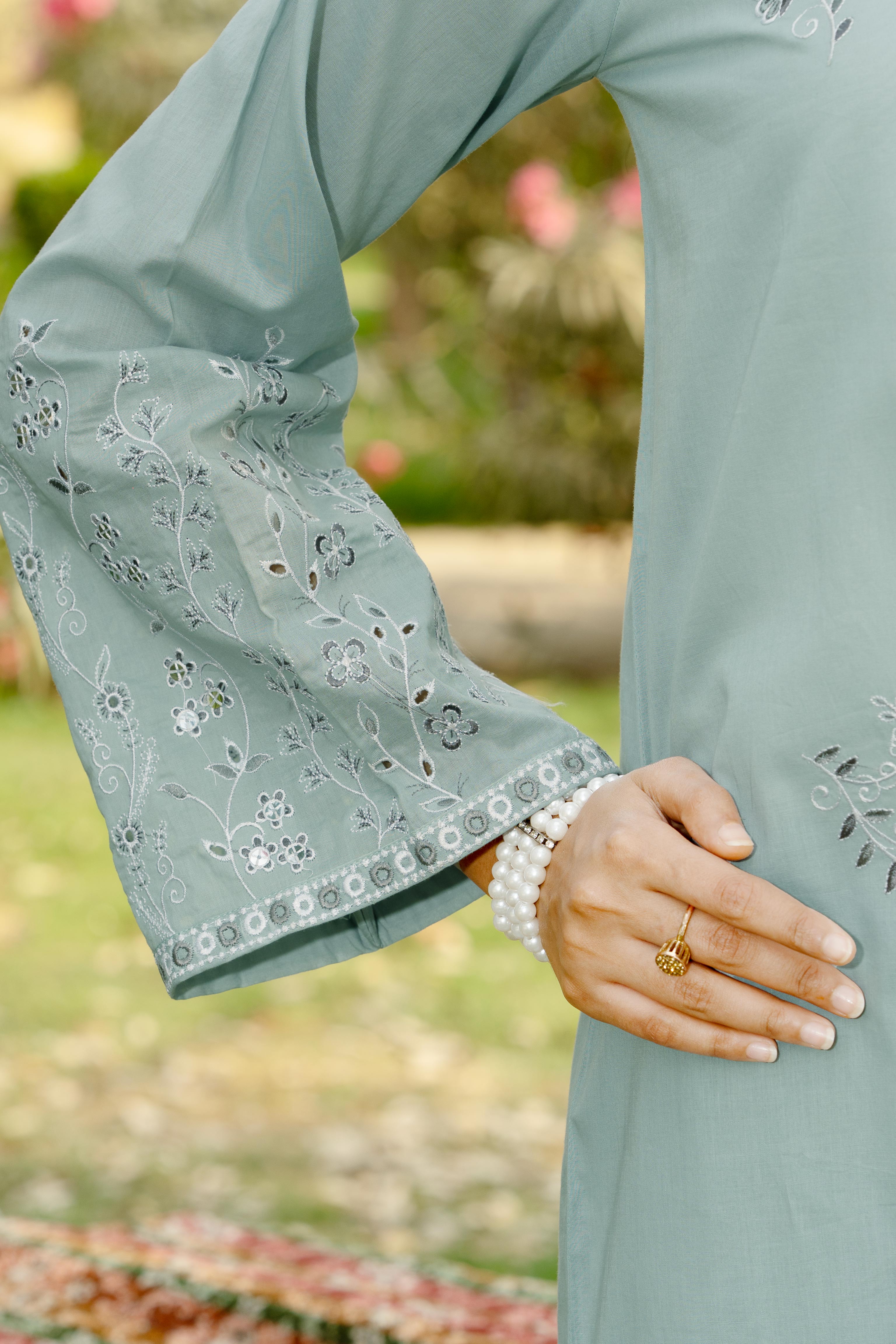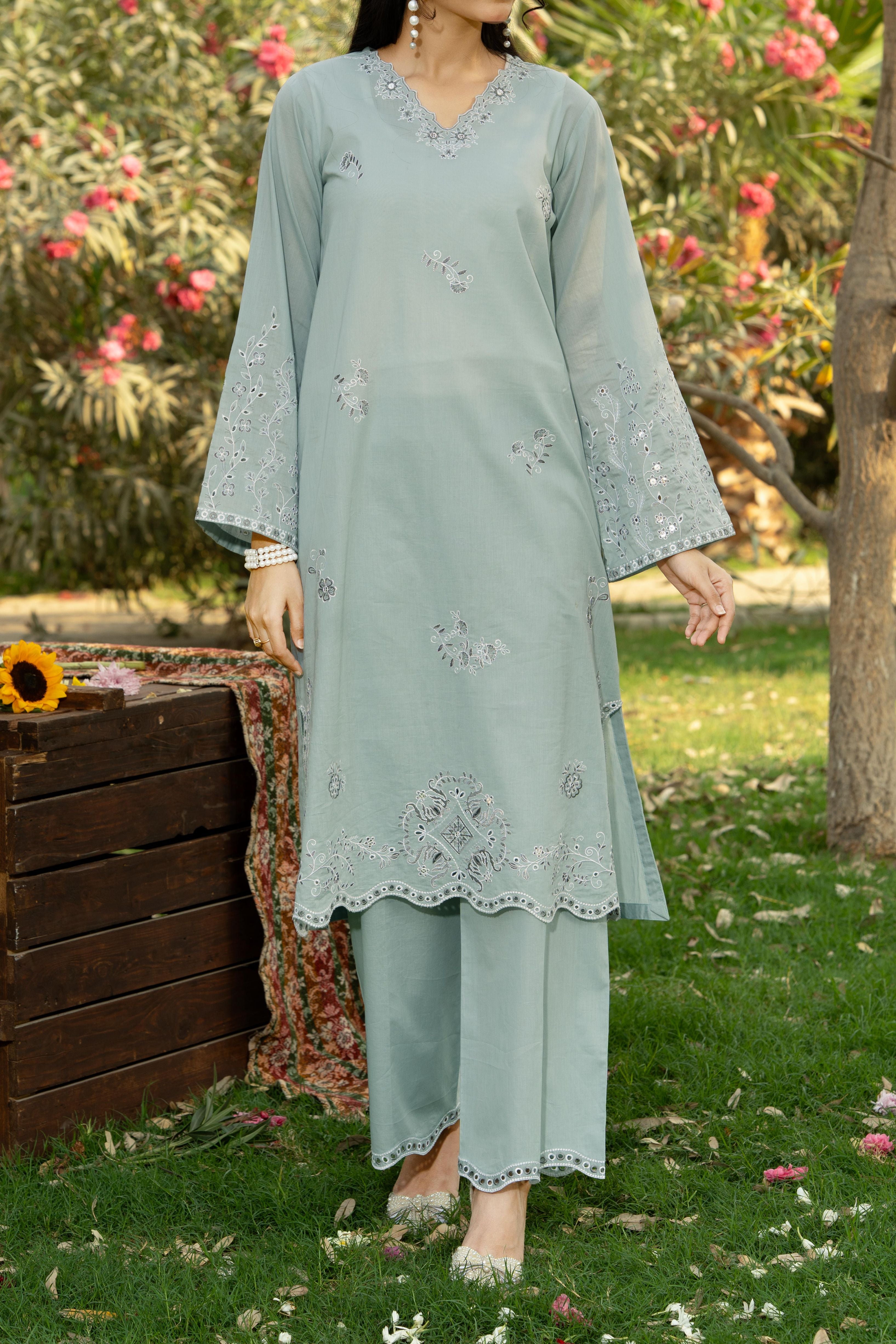 Grey Dyed Embroidered Lawn Shirt with Dyed Embroidered Cambric Trouser