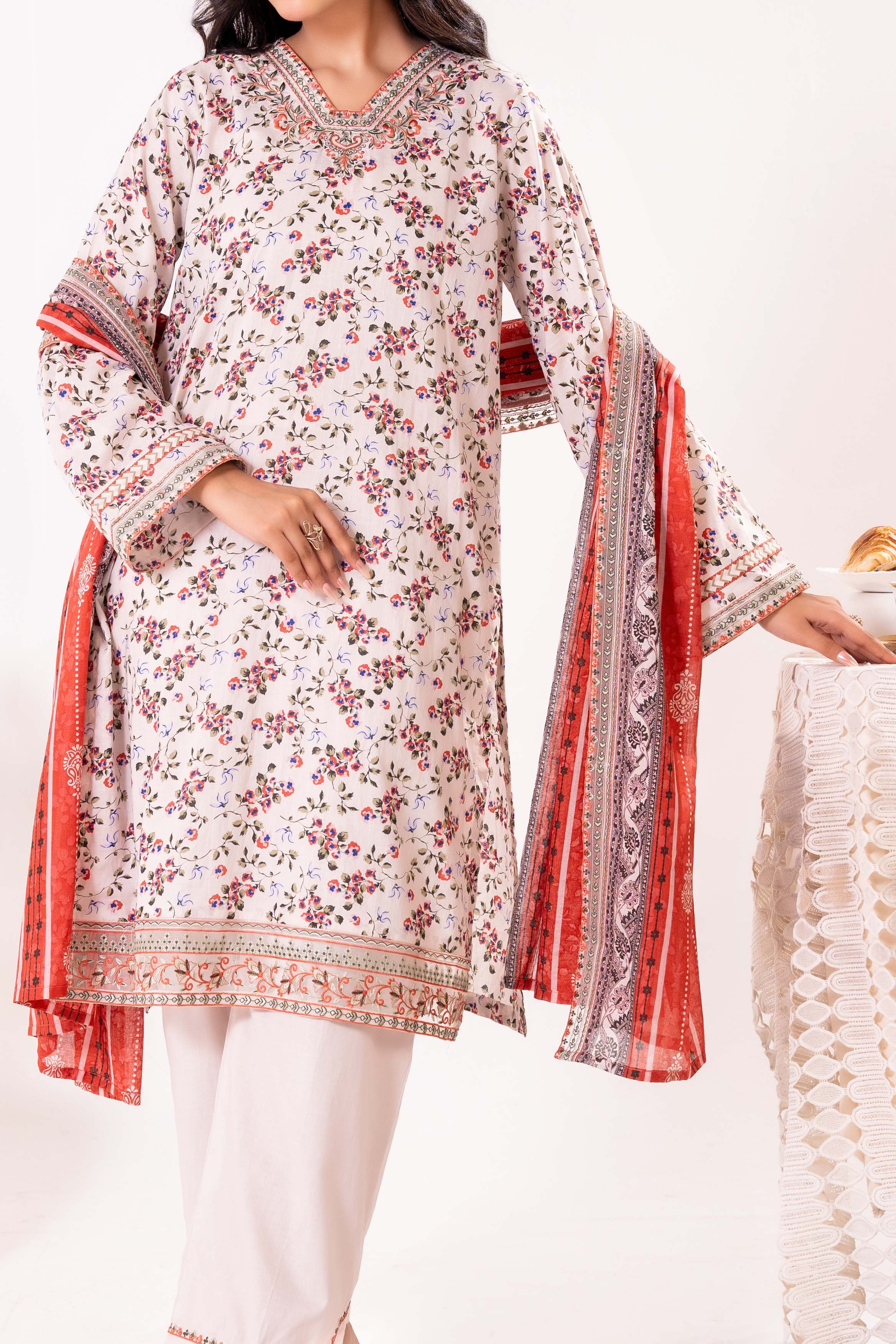 Printed Embroidered Lawn Suit - 3Pc