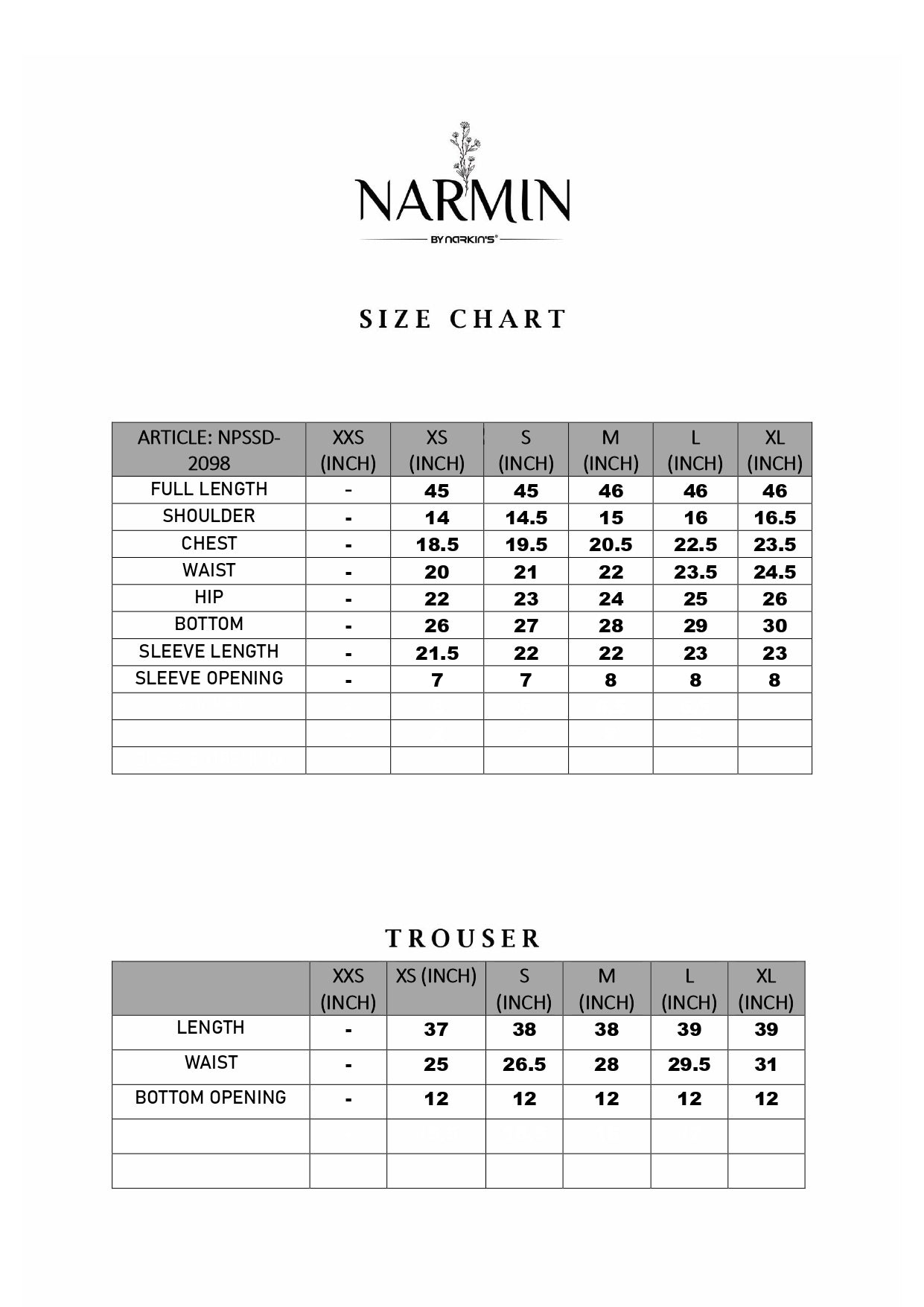 *Size Chart is available with the pictures*