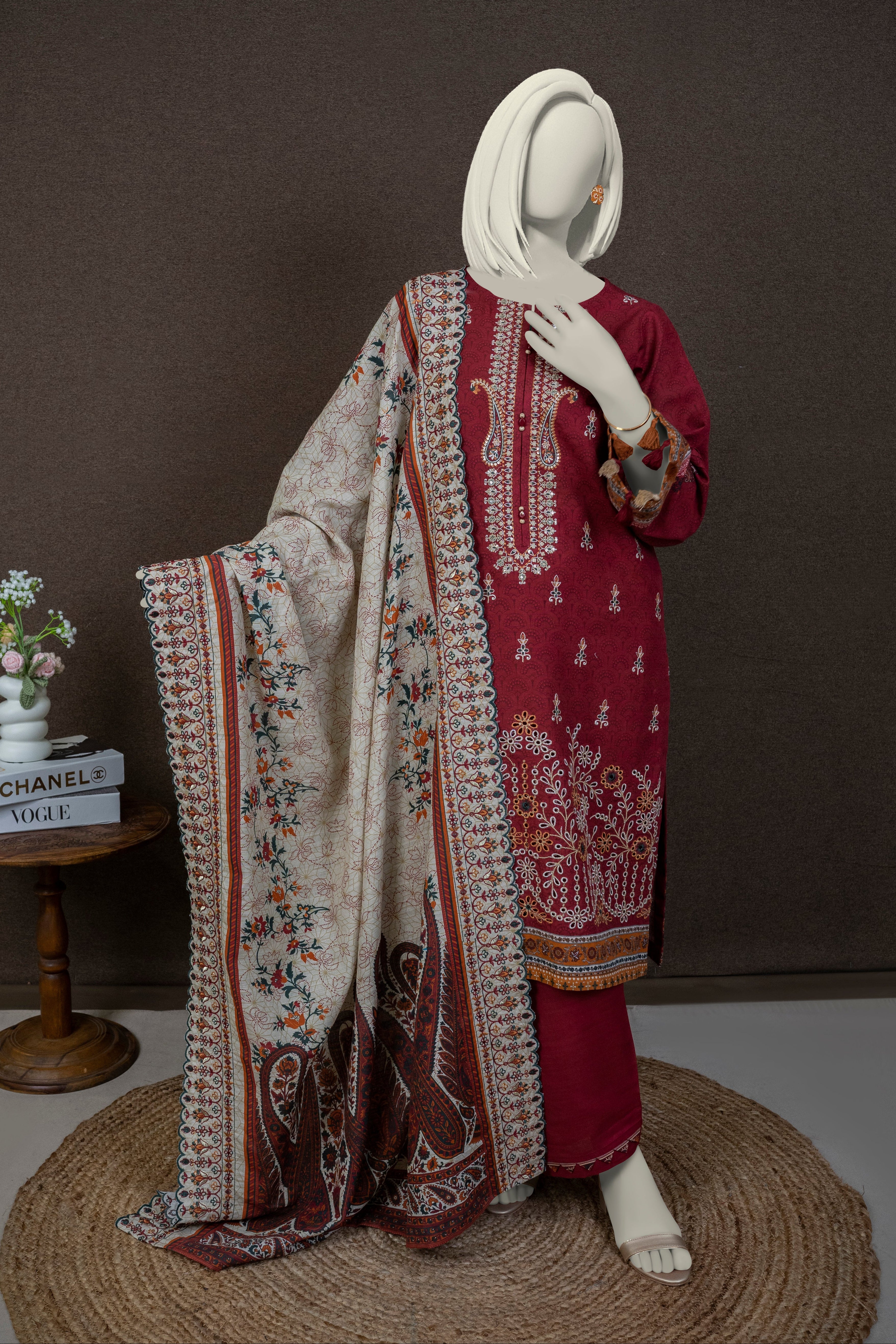 Printed Embroidered Khaddar Suit - Stitched 3 Pc