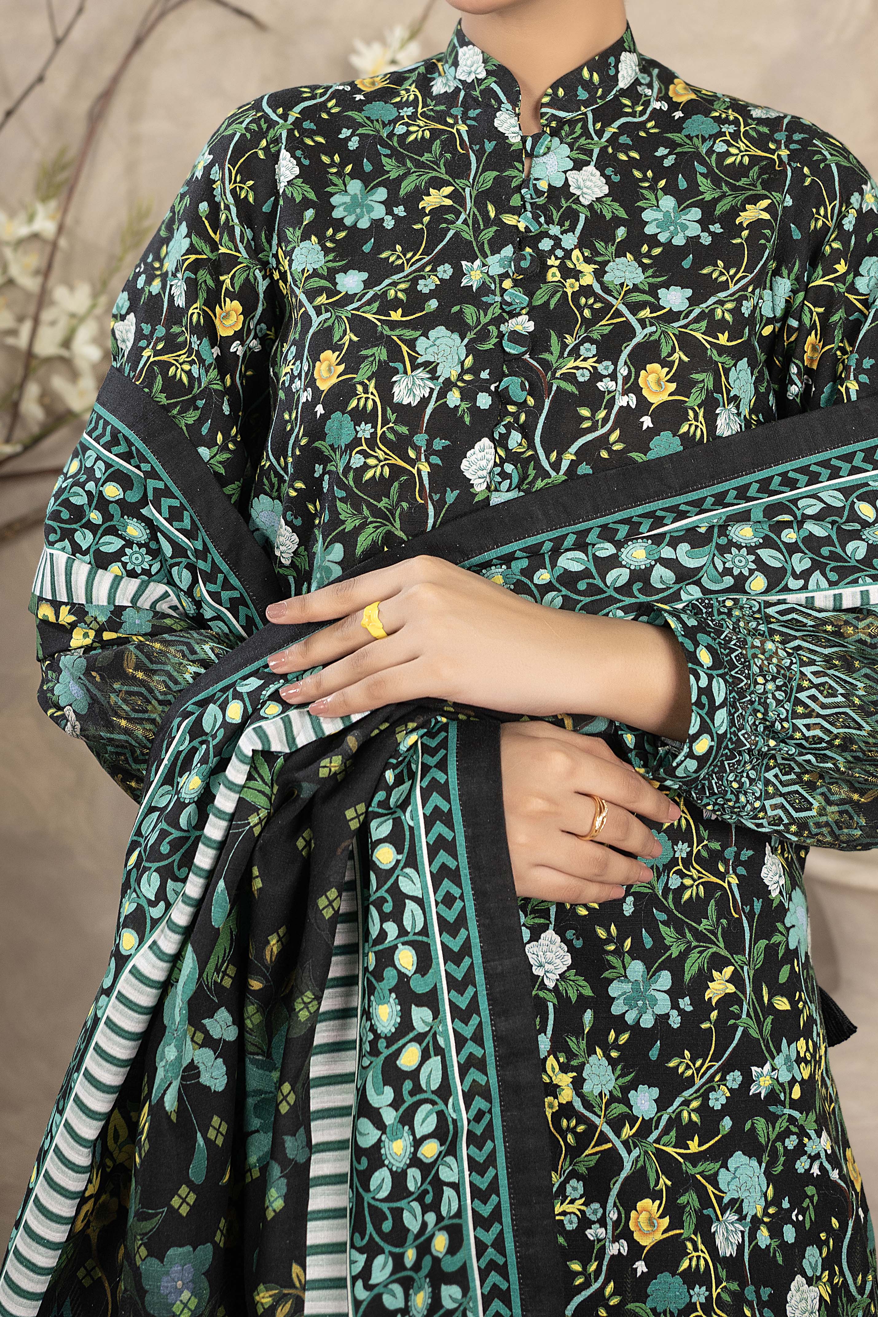 Printed Khaddar Suit - Stitched 3 Pc