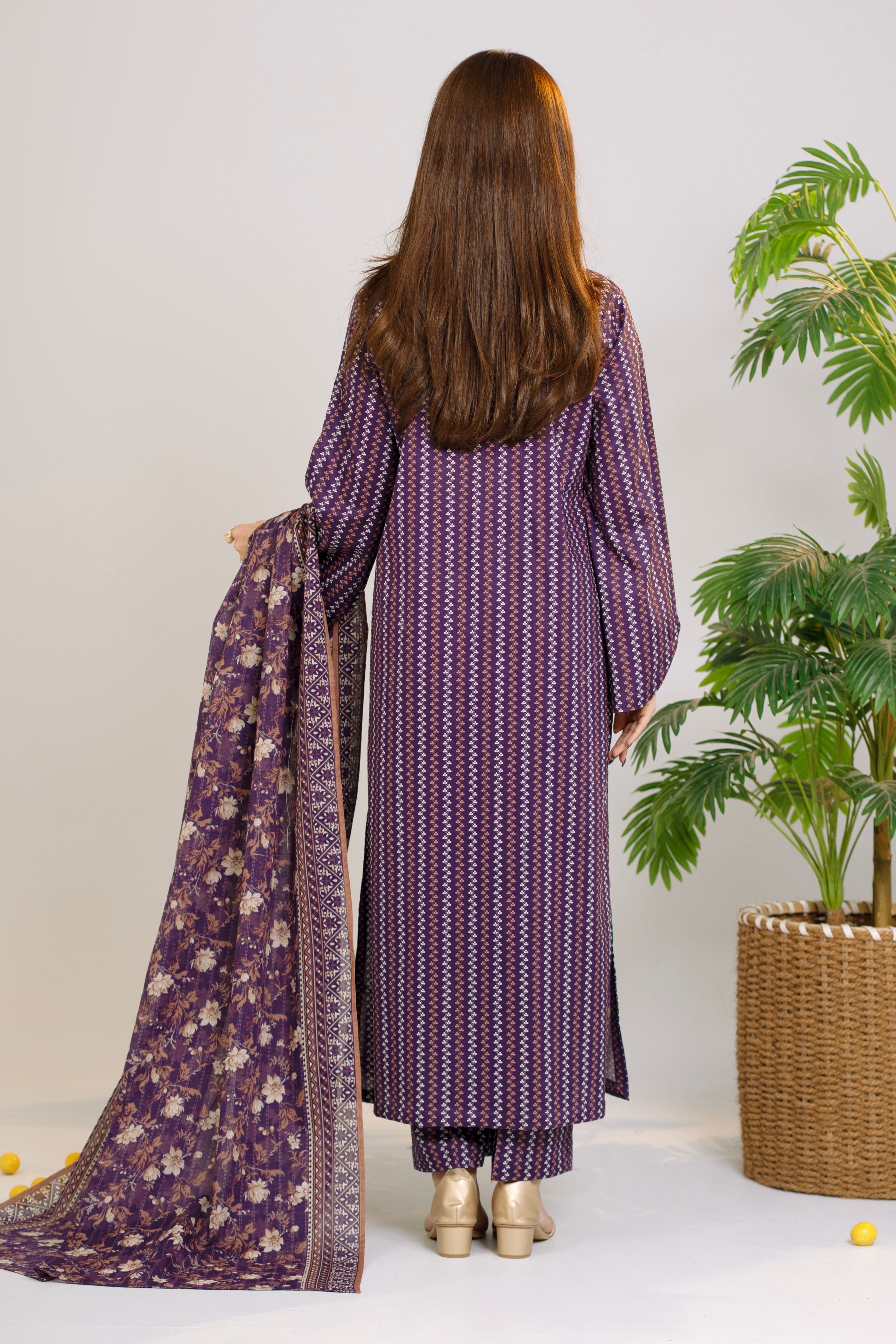 Purple Printed Lawn Unstitched Suit - 3-Piece | Product code: NUSLW3021