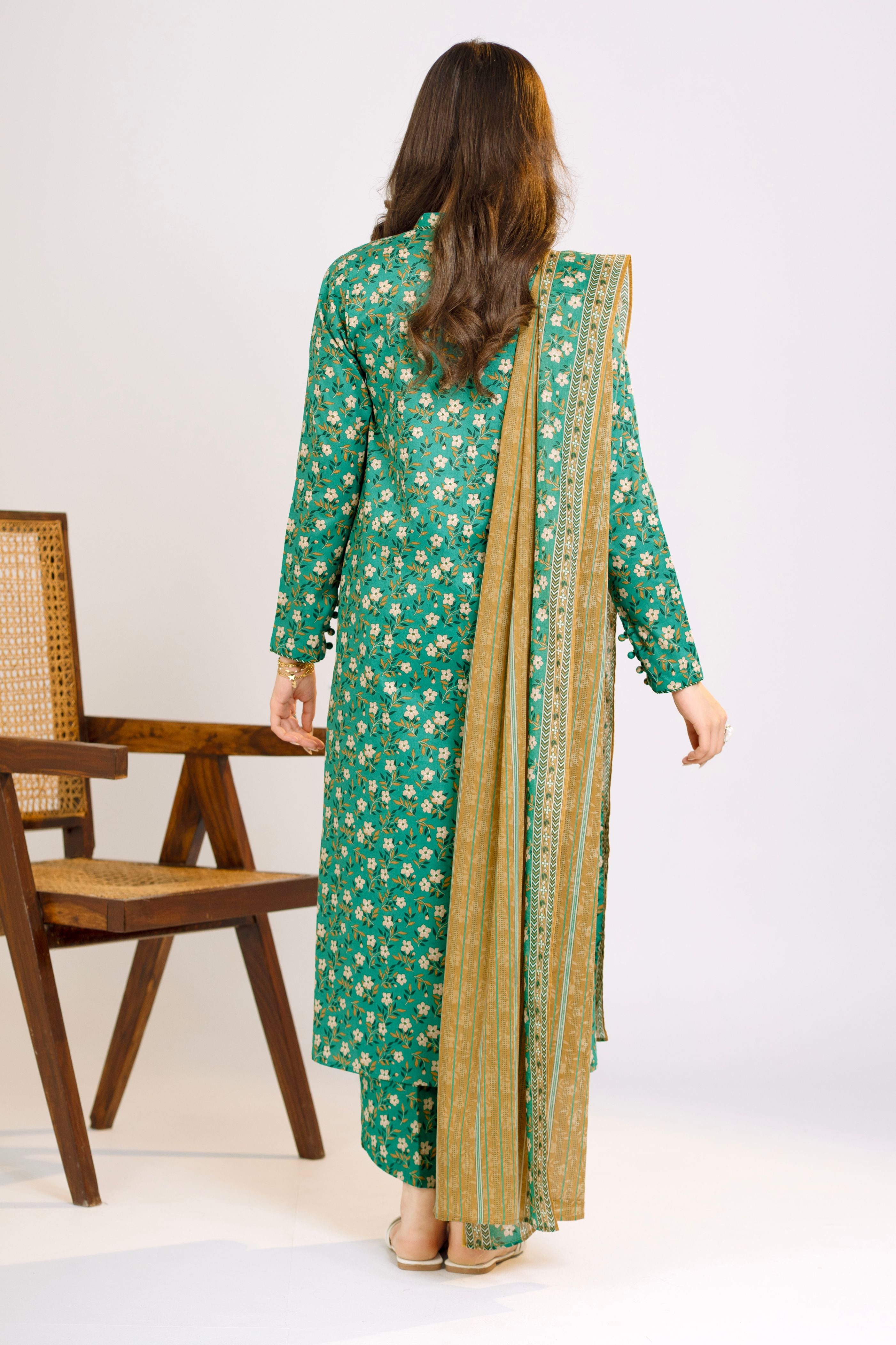 Leaf Green Printed Lawn Unstitched Suit - 3-Piece | Product code: NUSLW3022