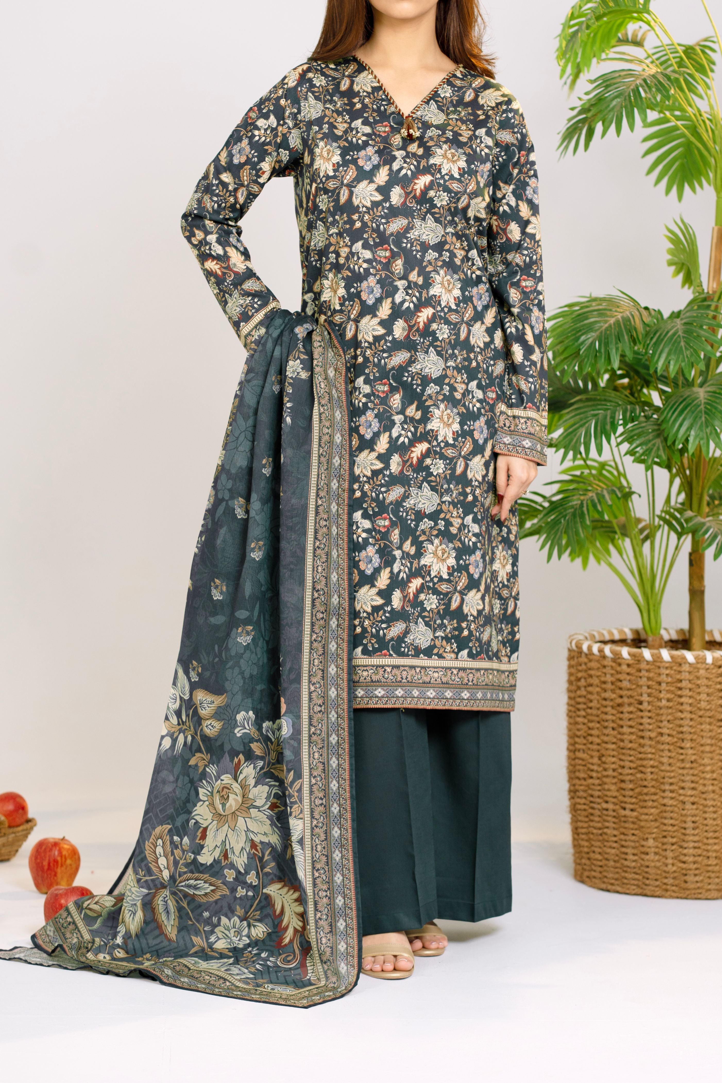 Charcoal Printed Lawn Unstitched Suit - 3-Piece | Product code: NUSLW3023