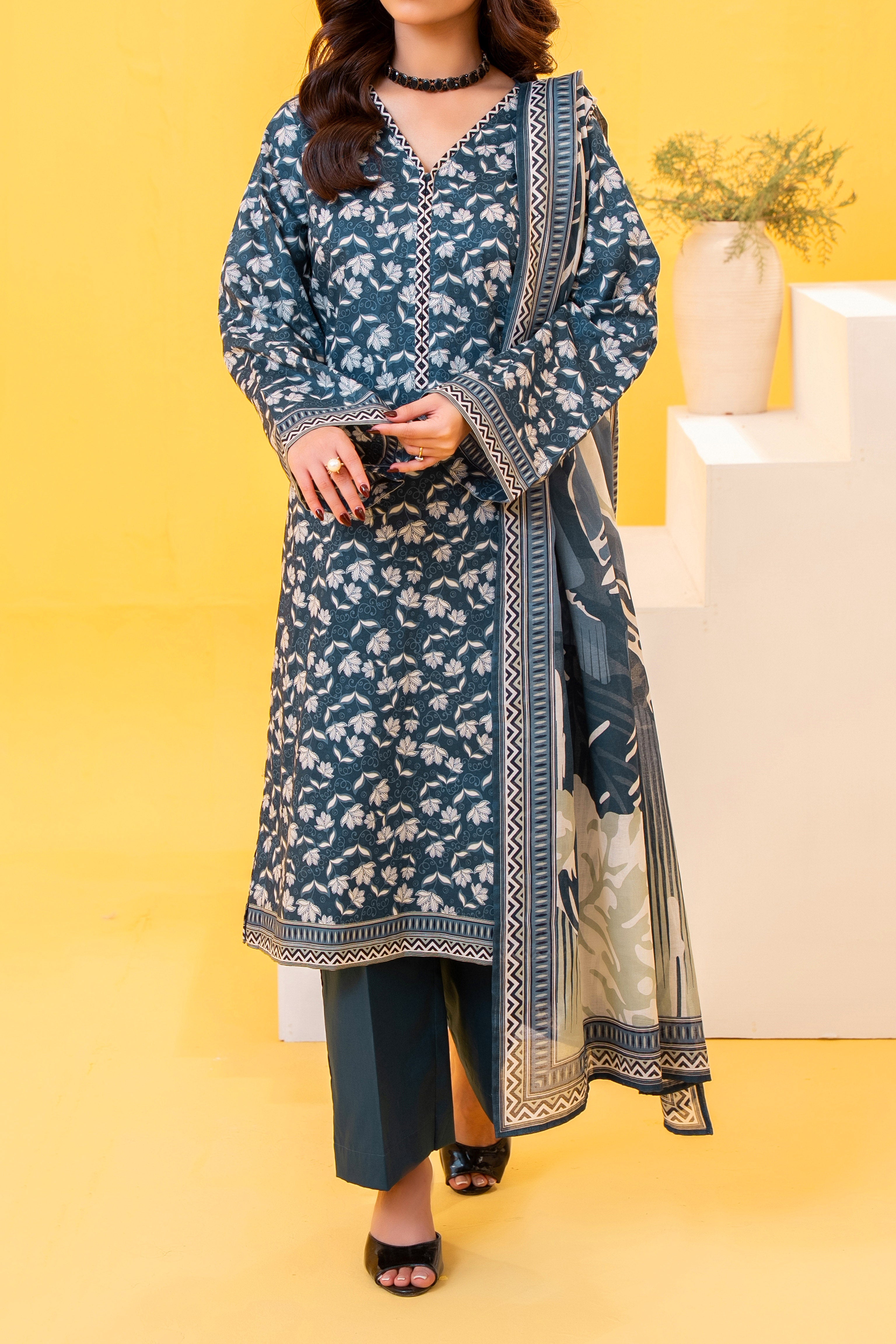 Blue Printed Lawn Unstitched Suit - 3-Piece | Product code: NUSLW3030
