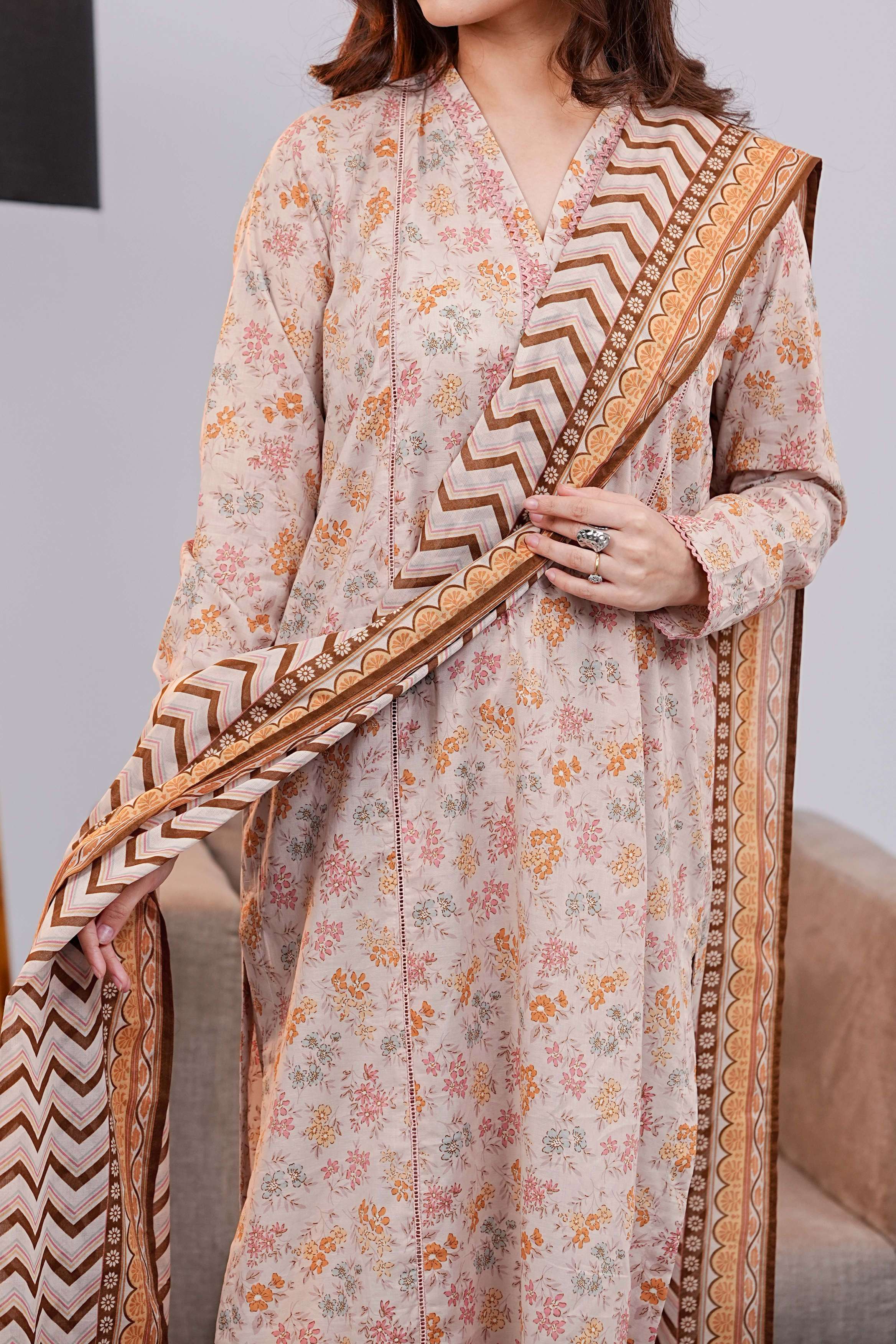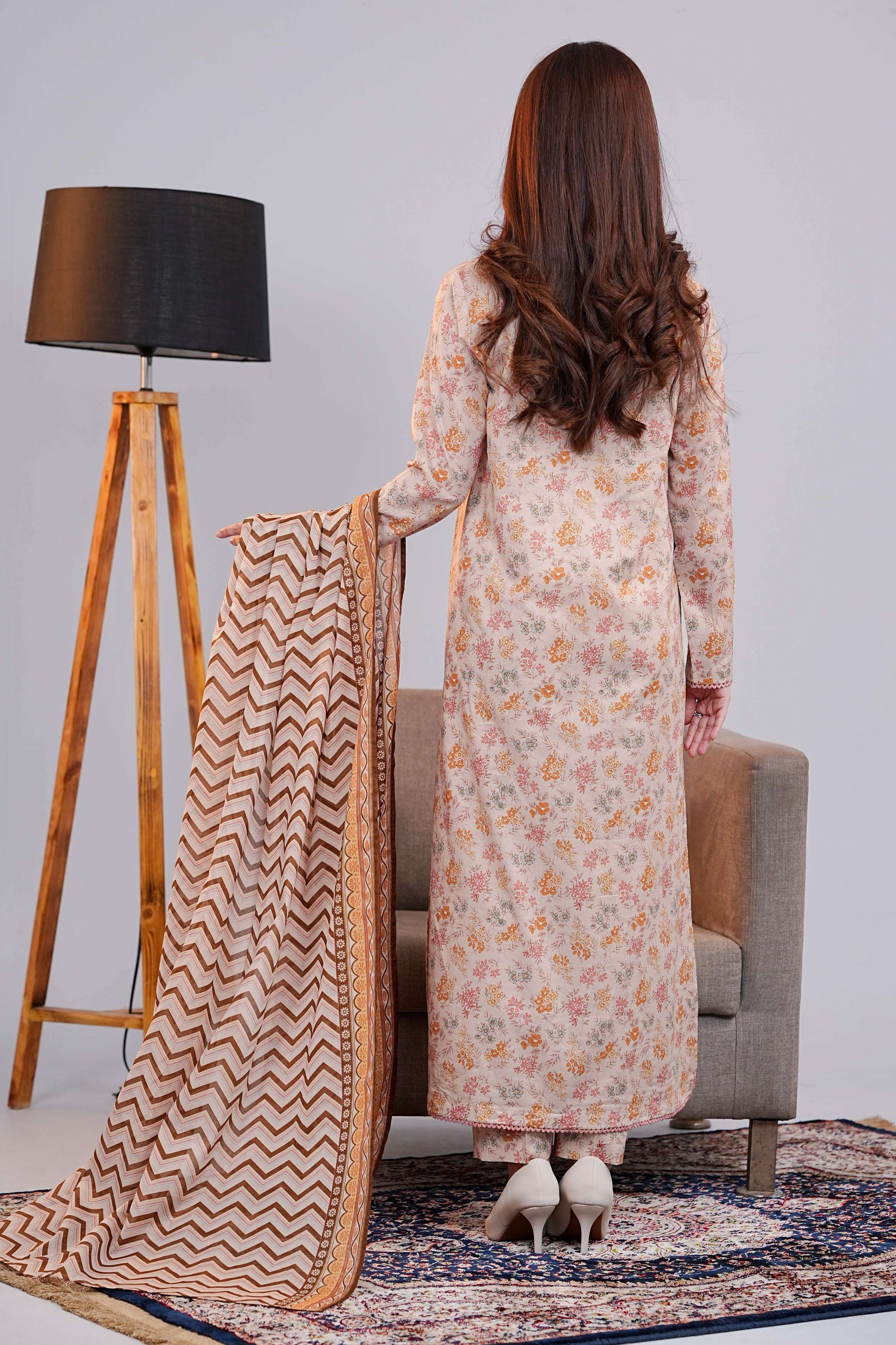 Off White Printed Lawn Unstitched Suit - 3-Piece | Product code: NUSLW3038