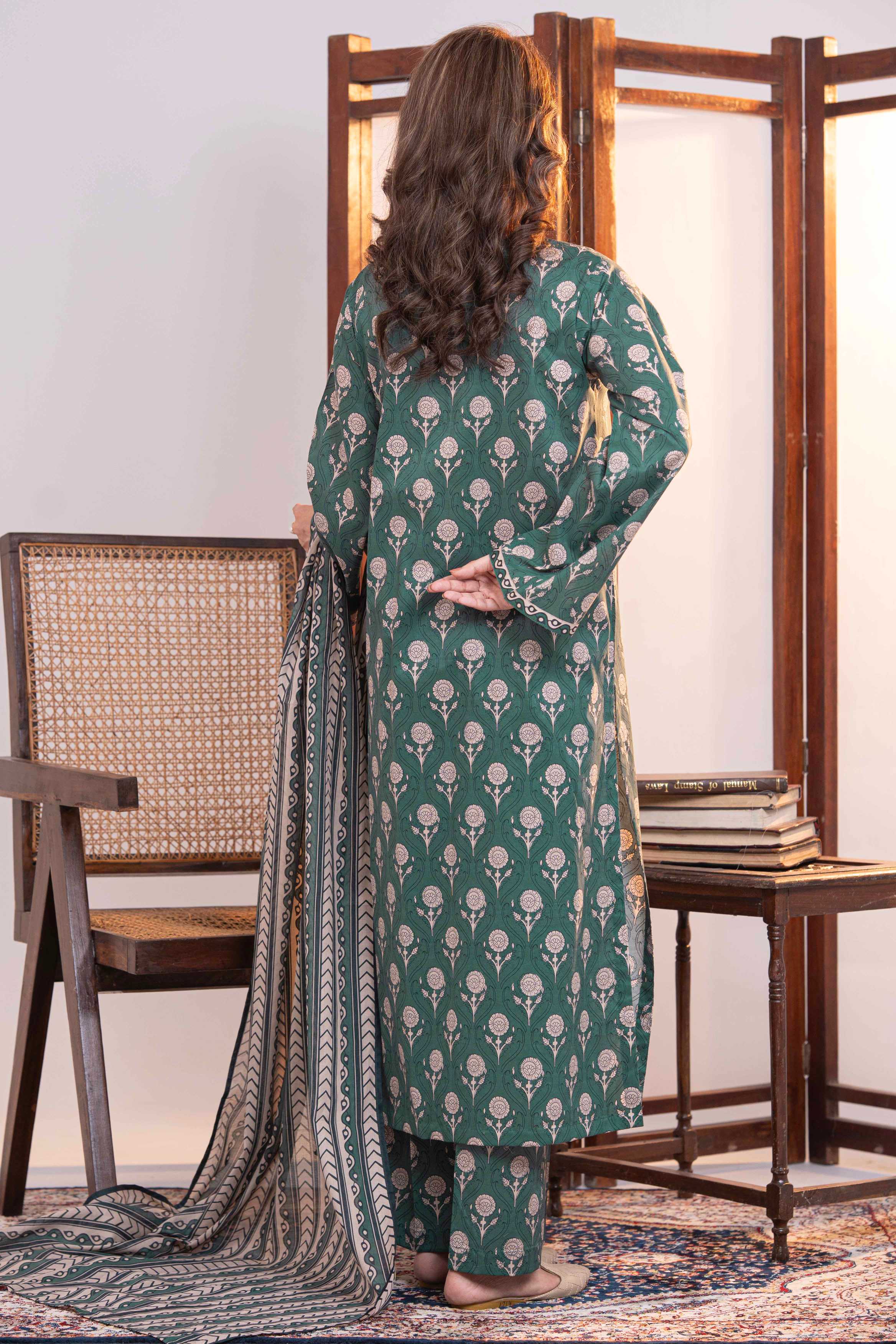 Green Printed Lawn Unstitched Suit - 3-Piece | Product code: NUSLW3039