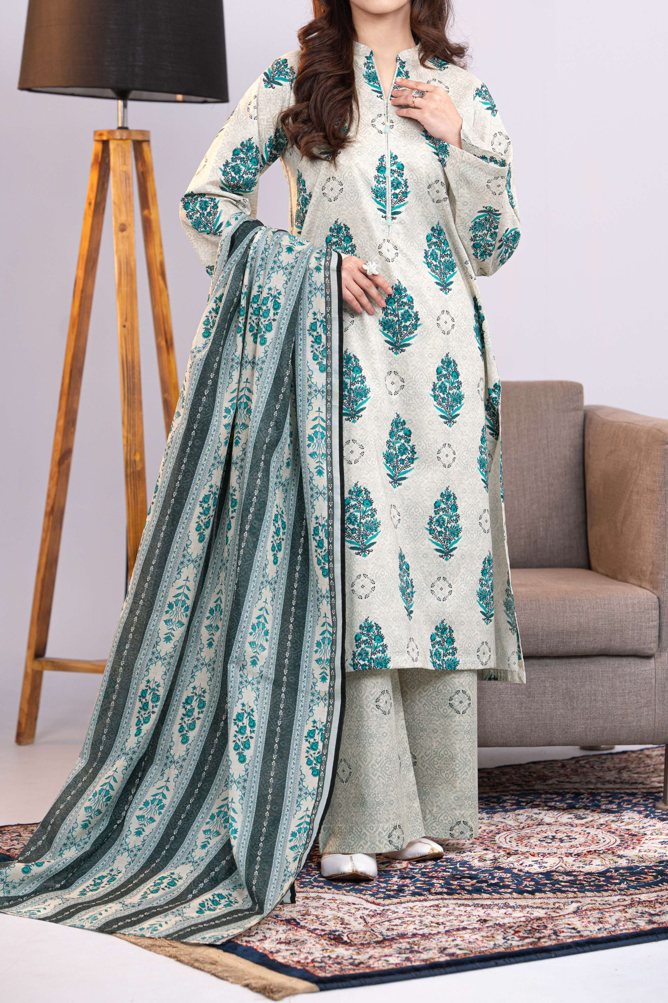 Fawn Printed Lawn Unstitched Suit - 3-Piece | Product code: NUSLW3041