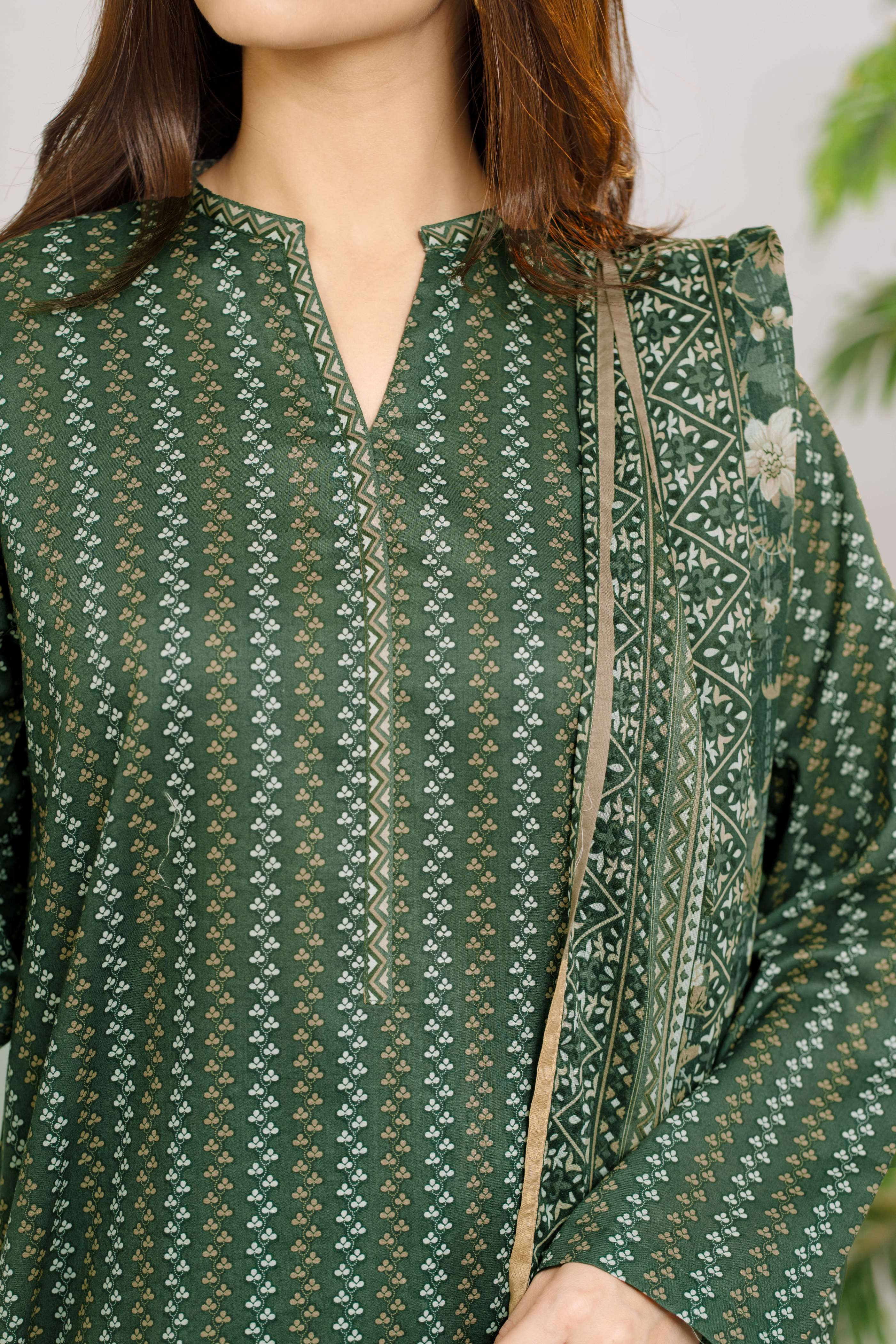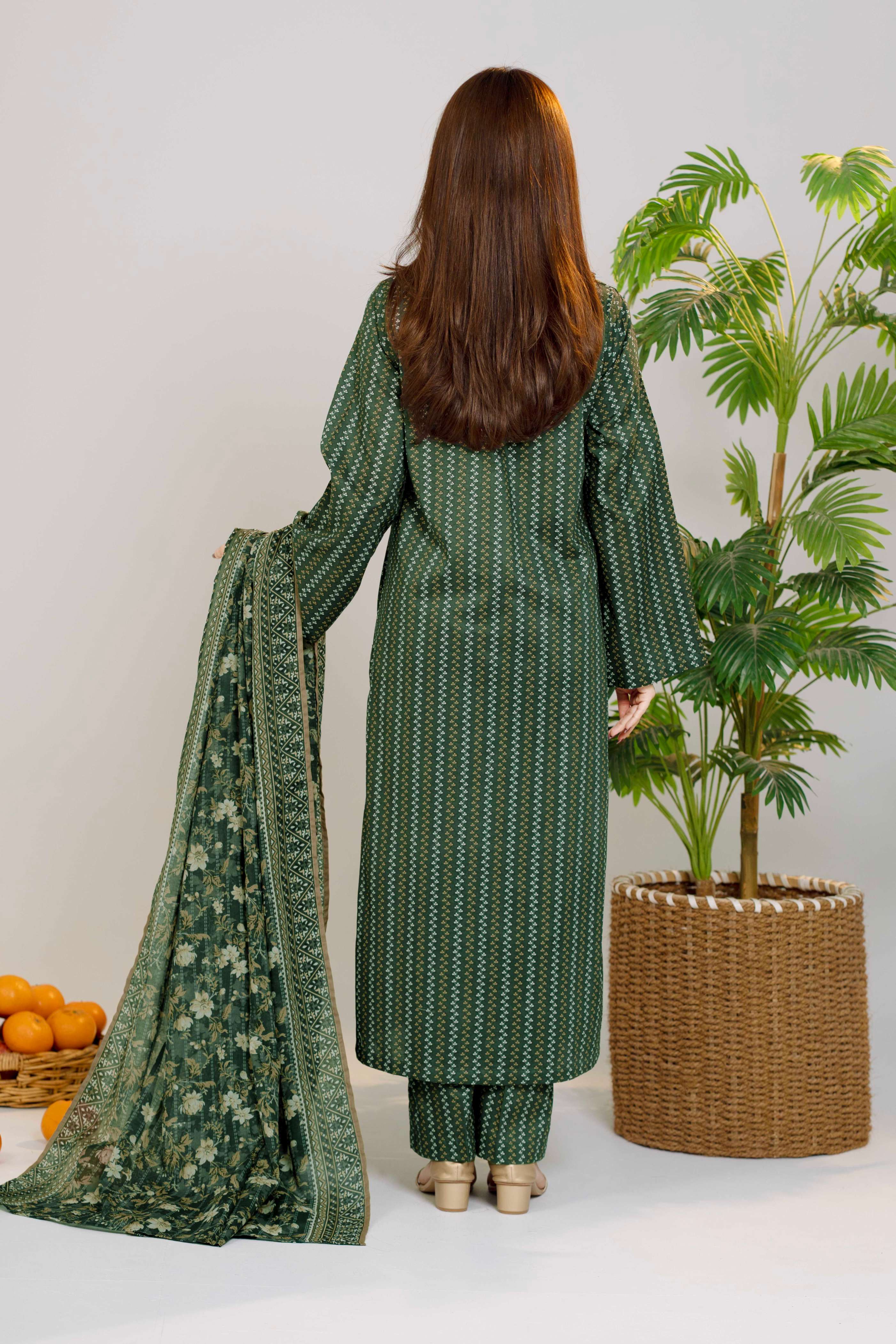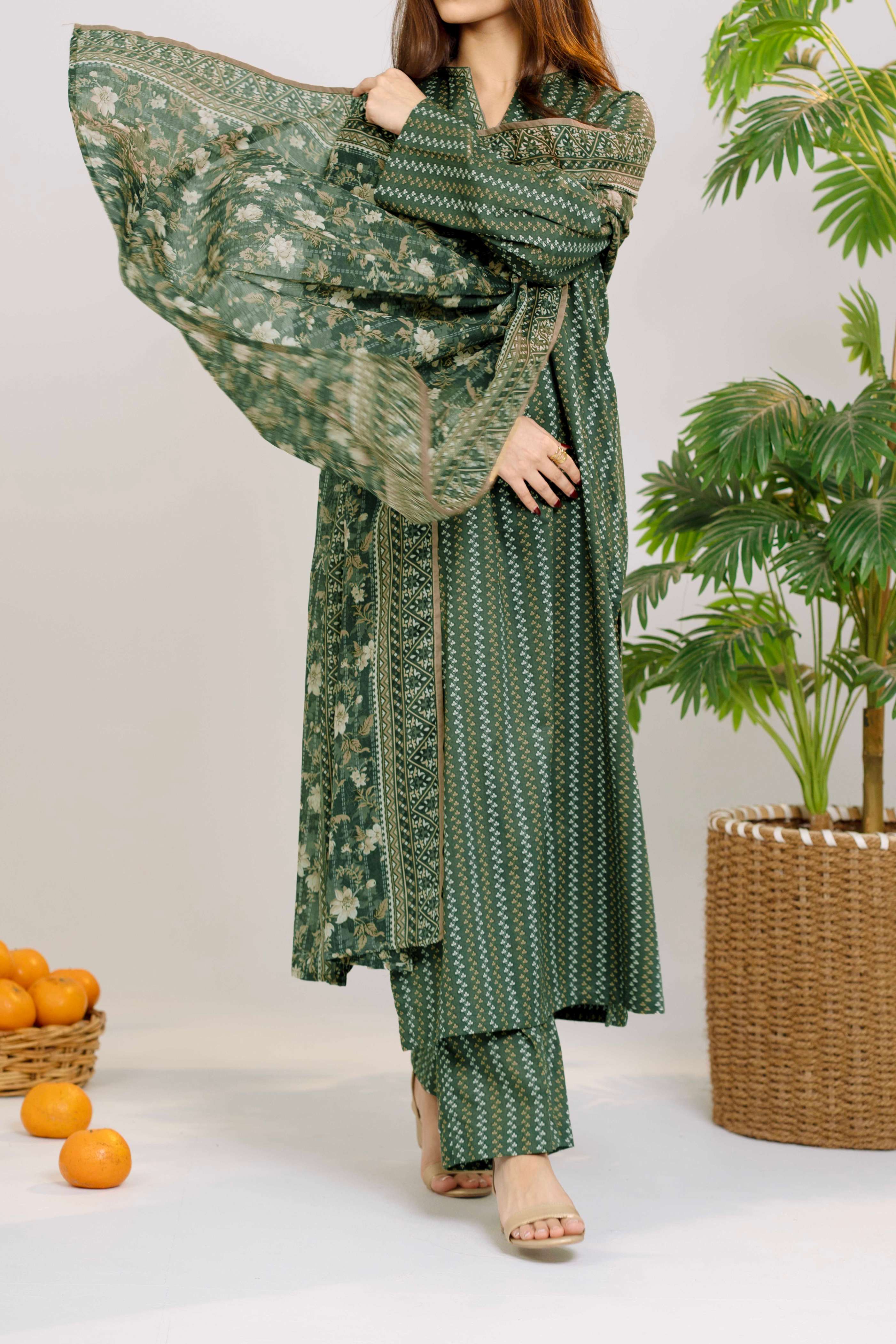 Green Printed Lawn Unstitched Suit - 3-Piece | Product code: NUSLW3048
