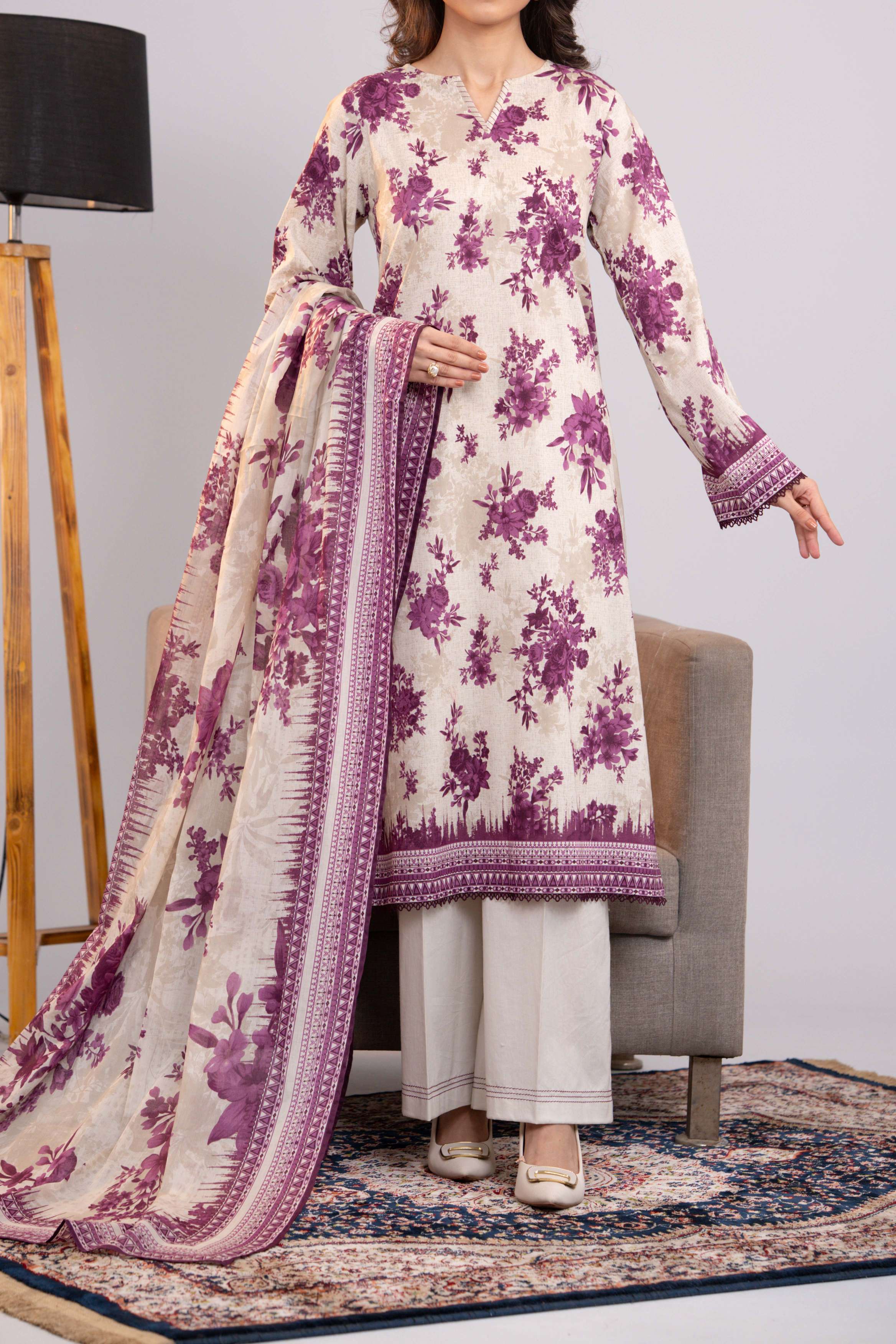 Fawn Printed Lawn Unstitched Suit - 3-Piece | Product code: NUSLW3063