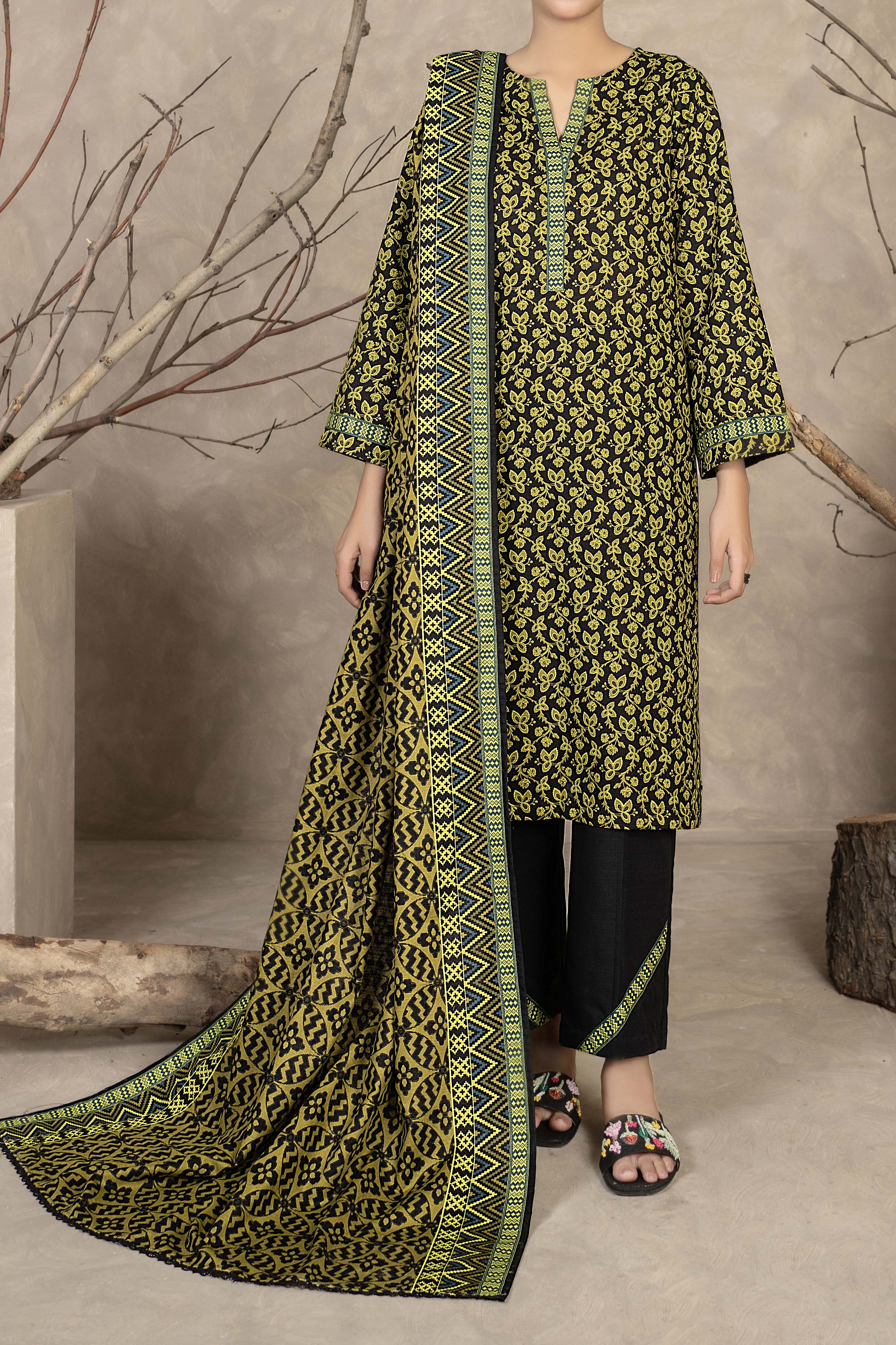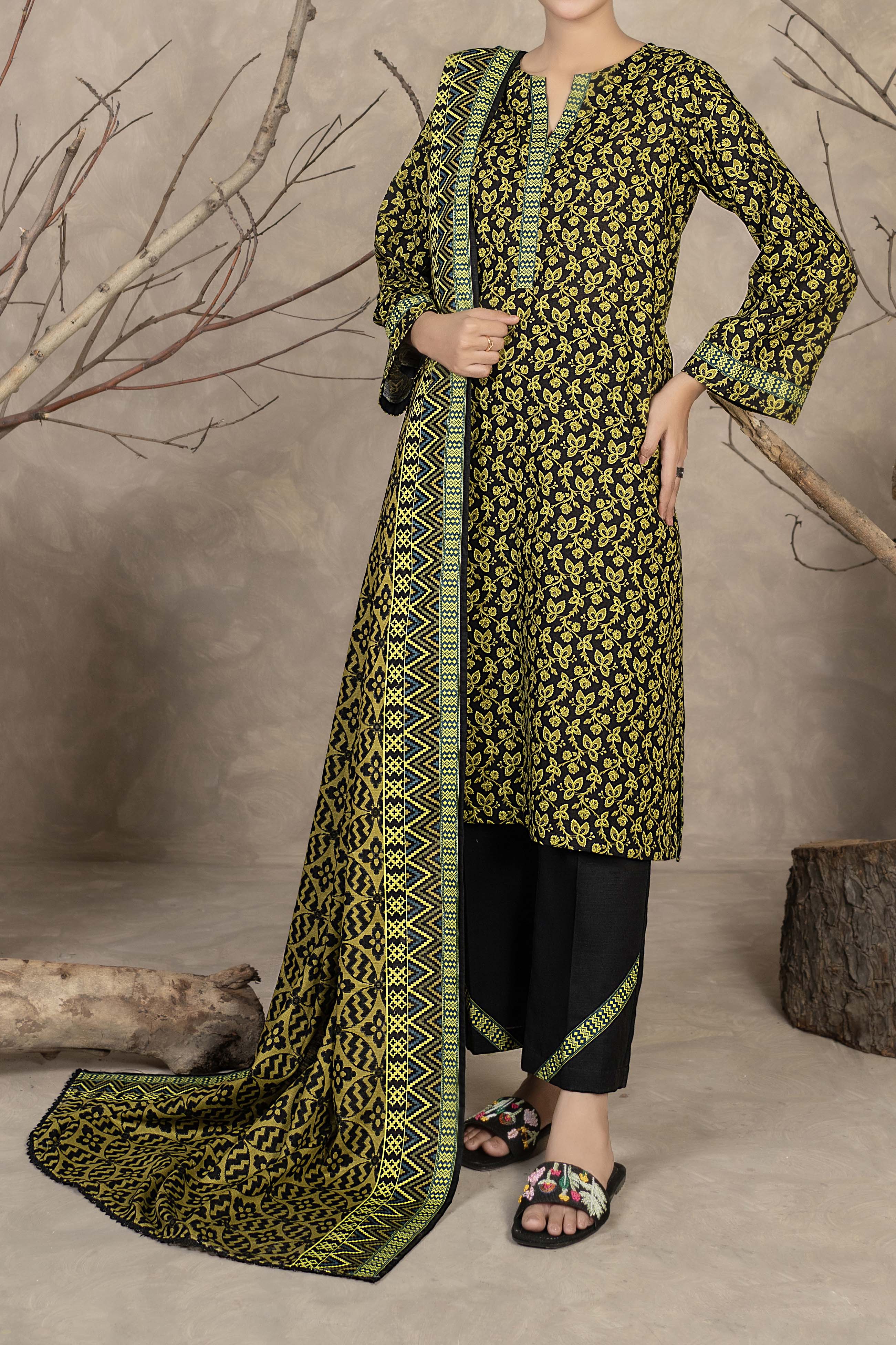 Printed Khaddar Suit - 3Pc