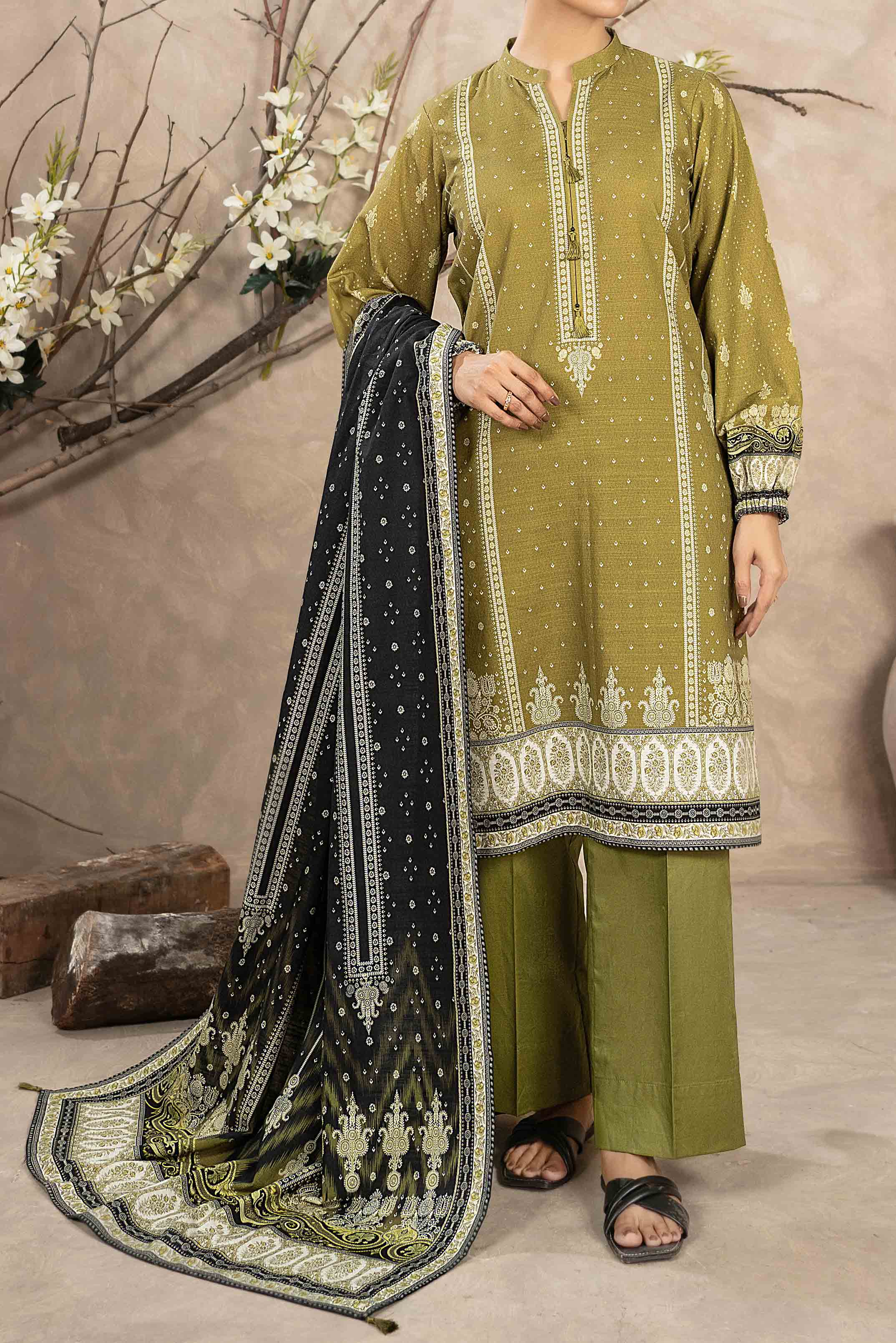 Printed Khaddar Suit - 3Pc