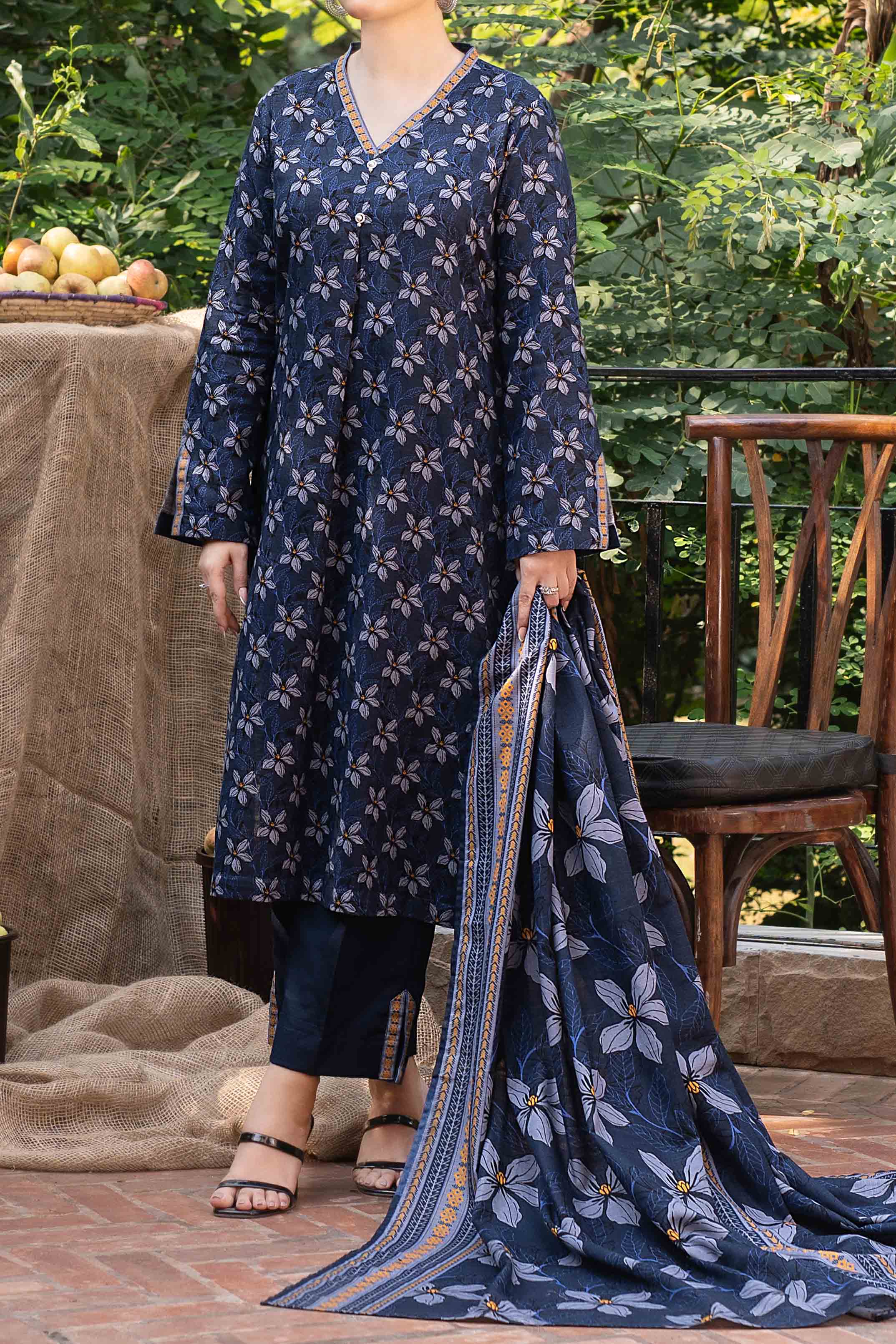 Printed Khaddar Suit - 3Pc