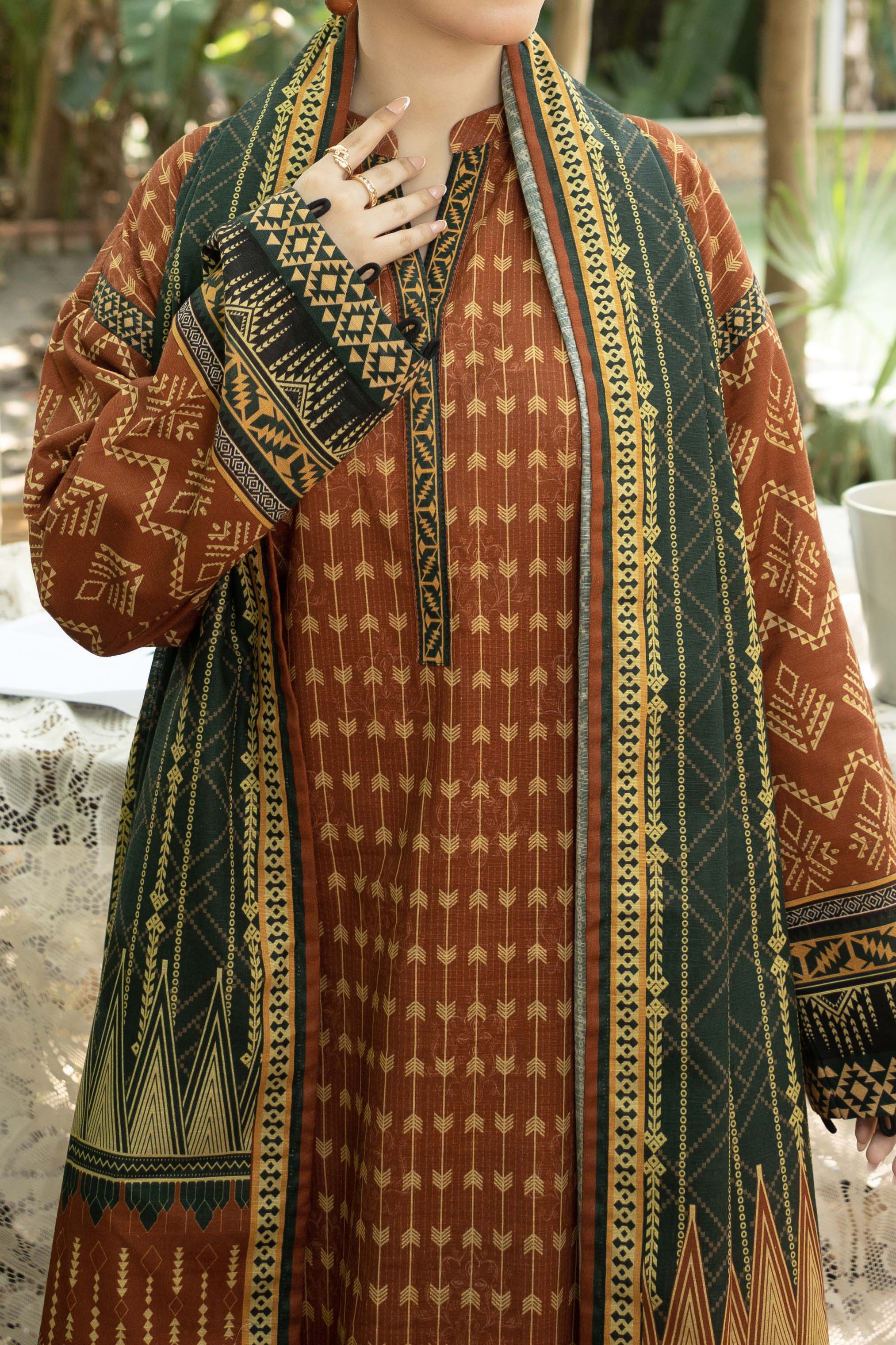 Printed Khaddar Suit - 3Pc
