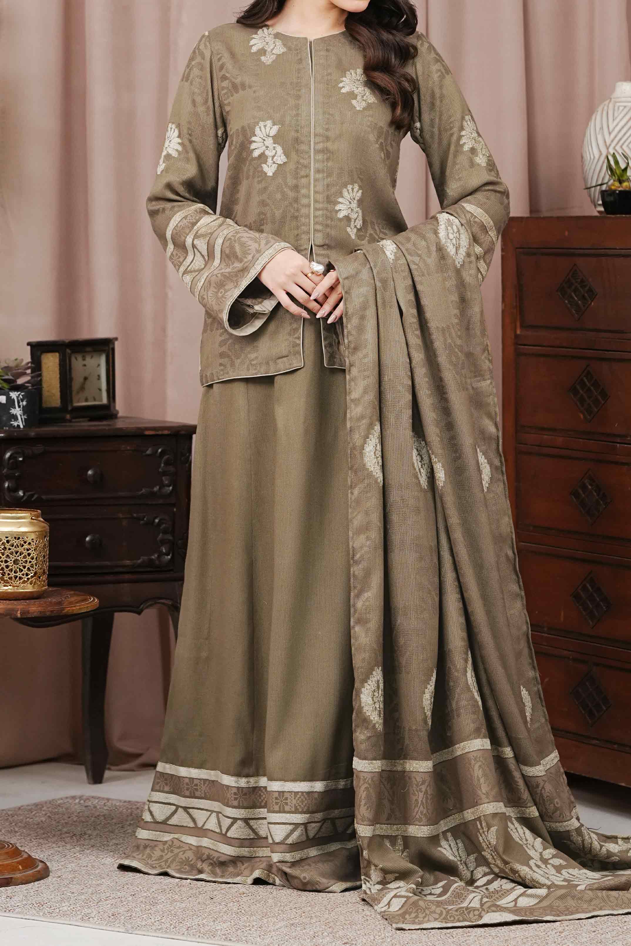 Unstitched Velvet Jacquard Suit - 3Pc