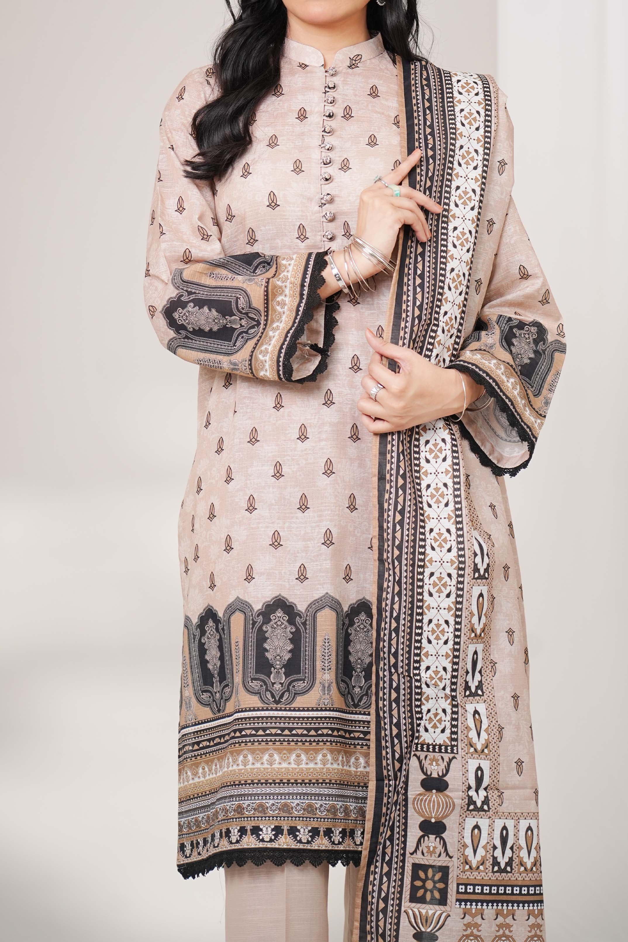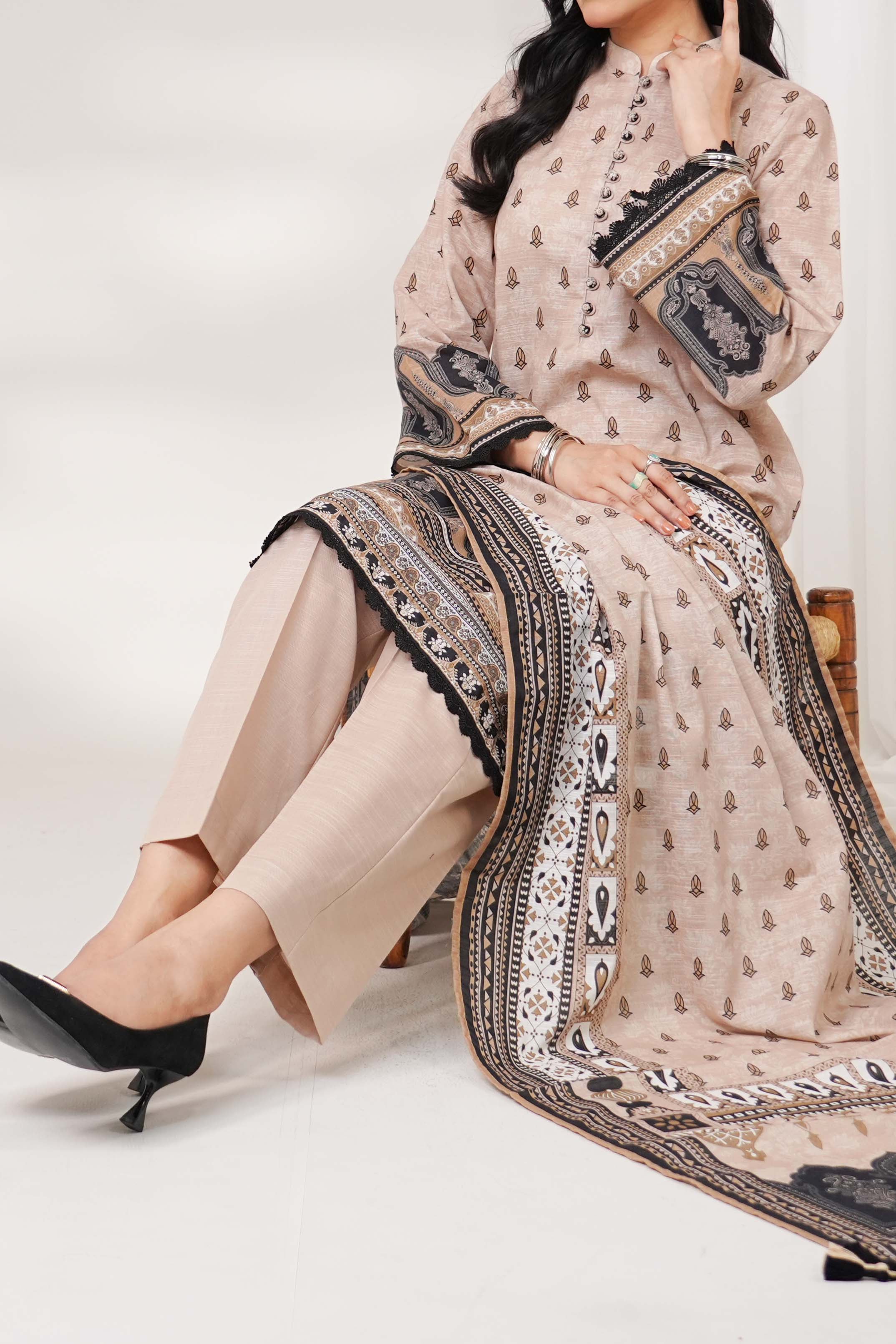Printed Unstitched Khaddar Suit - 3Pc