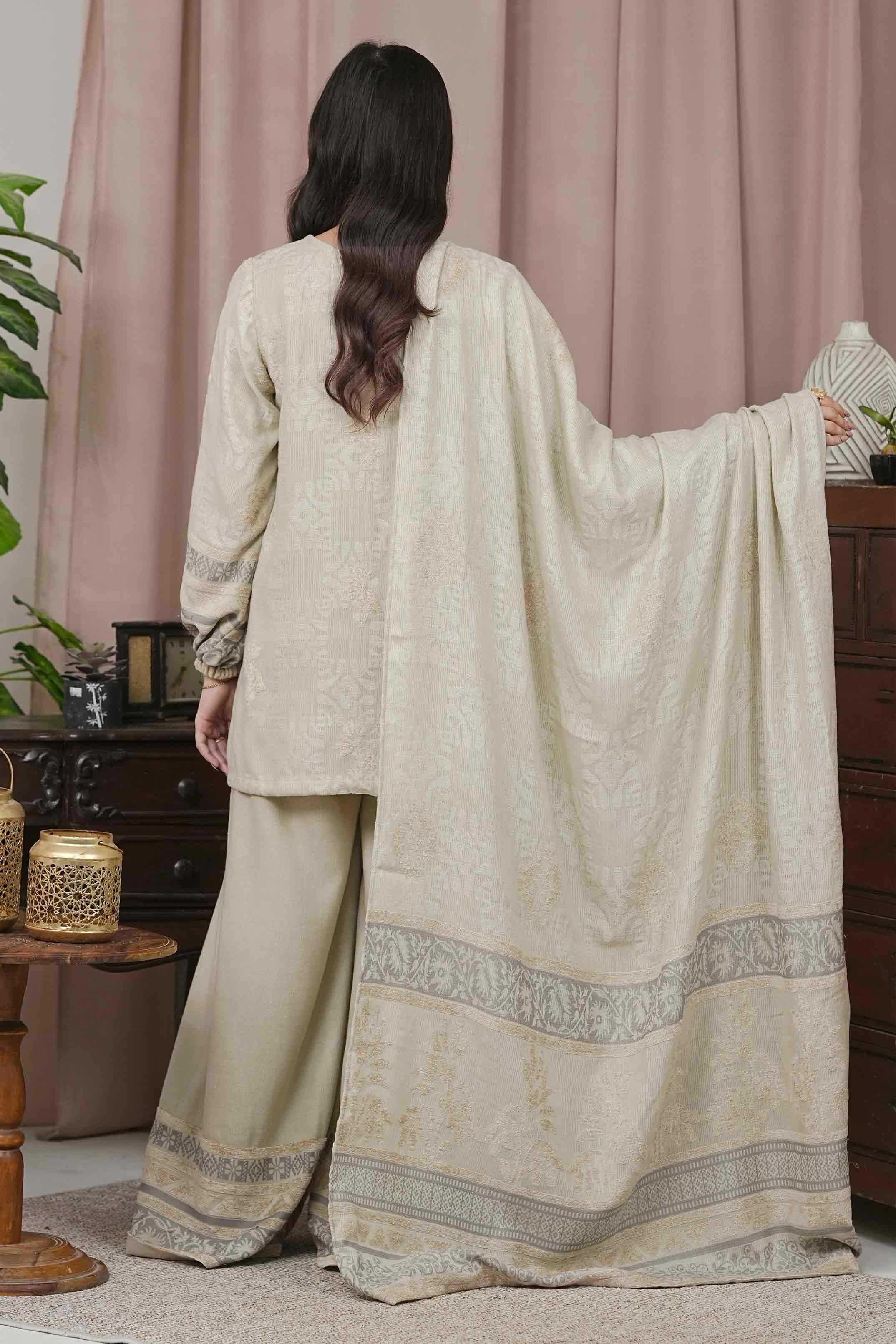 Unstitched Velvet Jacquard Suit - 3Pc